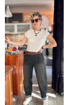 Merlo İtalyan Vip Likralı Kemerli Jean Pantolon Füme
