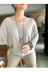 Mezzo İtalyan Kolyeli Tasarım Triko Bluz Beige: Şıklık