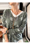 Mira Lotus Desen Kolyeli İtalyan Bluz Military