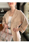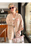 Mitti Cep Pul Payet Detay Kapşonlu Ceket Bej