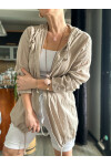 Musso Kapşonlu Arka Pul Detay Keten Ceket Bej