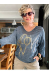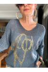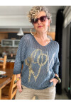 Nando İtalyan Varak Love Baskılı Triko Blue