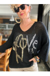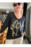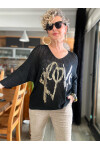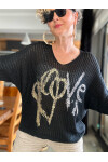 Nando İtalyan Varak Love Baskılı Triko Siyah