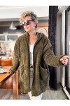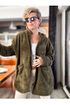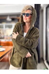 Nessa Kapşonlu Oversize Peluş Polar Hırka Haki