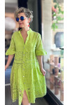 Şıklığı ve rahatlığı bir arada sunan, göz alıcı broderie anglaise (göz bebeği işleme) ve dantel detaylı bu elbise, gardırobunuza zarif bir bohem dokunuş katacak.
