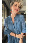 Nessi İtalyan Brode Gömlek Elbise İndigo Mavi