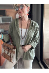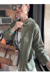 Papel Nakış Detaylı İpli Kapşonlu Hırka Ceket Haki