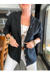 Papel Nakış Detaylı İpli Kapşonlu Hırka Ceket Siyah