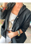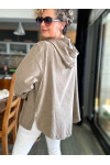 Papel Nakış Detaylı İpli Kapşonlu Hırka Ceket Vizon