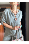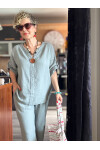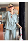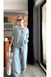 Passero Müslin Tahta Düğmeli Bluz Pantolon Takım Açık Gri