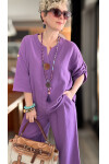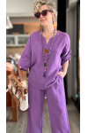 Passero Müslin Tahta Düğmeli Bluz Pantolon Takım Mor