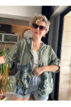 Satti İtalyan Tasarım Çiçek Desen Kapşon Ceket Haki Yeşil Zemin