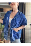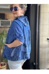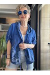 Passi İtalyan Tasarım Çiçek Desen Kapşon Ceket Sax