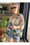 Passi İtalyan Tasarım Çiçek Desen Kapşon Ceket Vizon