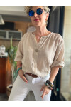 Peppino İtalyan Tahta Düğme Detay Bluz Bej