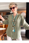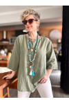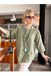 Peppino İtalyan Tahta Düğme Detay Bluz Haki