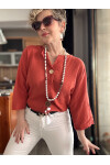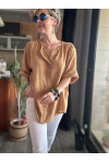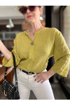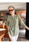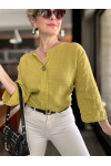 Peppino İtalyan Tahta Düğme Detay Bluz Hardal