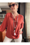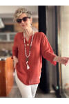 Peppino İtalyan Tahta Düğme Detay Bluz Kiremit