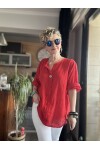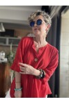 Peppino İtalyan Tahta Düğme Detay Bluz Kırmızı