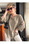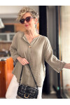 Peppino İtalyan Tahta Düğme Detay Bluz Vizon