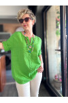 Peppino İtalyan Tahta Düğme Detay Bluz Yeşil