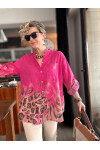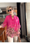 Pezzi Leopar Desen İtalyan Gömlek Fuşya