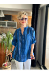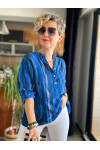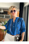 Picci Çizgi Desen Sax Mavi Desenli İtalyan Gömlek