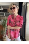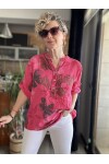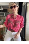 Picci Yaprak Desen Fuşya Desenli İtalyan Gömlek