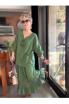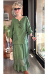 Pronto Vip Tasarım File Detay Etek Bluz Takım Haki Yeşil