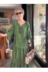 Pronto Vip Tasarım File Detay Etek Bluz Takım Haki Yeşil