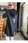 Que Tasarım Arka Star Pul Detay Kapşon Ceket Siyah