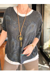 Raffa Yaprak Desen Kolyeli İtalyan Bluz Nero (Siyah)