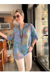 Ragazza Yaprak Desen İtalyan Gömlek Açık Mavi