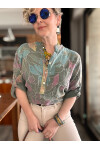 Ragazza Yaprak Desen İtalyan Gömlek Haki