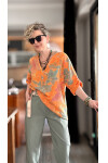 Ragazza Yaprak Desen İtalyan Gömlek Turuncu