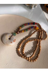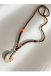 Raja Doğal Taş Etnik Cam Bambu Kolye Ekru