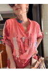 Randa Yaprak Desen İtalyan Gömlek Mercan