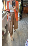 Ranna Cep Nakış Detay V Paça Pantolon Bej