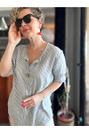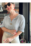 Rimmi İtalyan Çizgili Düğme Detay Bluz Açık Gri