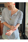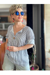Rimmi İtalyan Çizgili Düğme Detay Bluz Beyaz