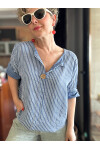 Rimmi İtalyan Çizgili Düğme Detay Bluz İndigo