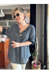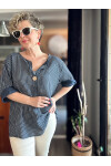 Rimmi İtalyan Çizgili Düğme Detay Bluz Lacivert