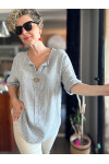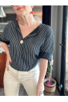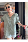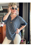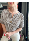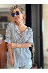 Rimmi İtalyan Çizgili Düğme Detay Bluz Sax