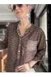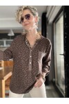 Santa Pul Detaylı Leopar Desen Gömlek Kahve