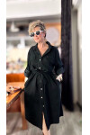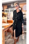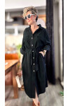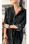 Savi İtalyan Gömlek Yaka İnce Fitil Kadife Elbise Siyah