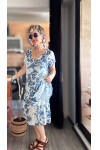Tassi İtalyan Lotus Desenli Elbise Açık Mavi