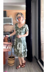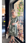 Tassi İtalyan Lotus Desenli Elbise Haki Yeşil