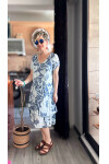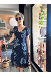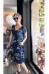 Tassi İtalyan Lotus Desenli Elbise Lacivert