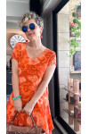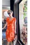 Tassi İtalyan Lotus Desenli Elbise Turuncu