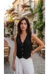 Terra %100 Linen Tasarım Düğmeli Yelek Siyah